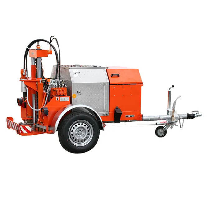 Enaxlad vagn med rostfri vattentank, oljetank och hydraulaggregat med 4-takts bensindriven motor. Två hydrauliskt manövrerade cylindrar medföljer för att flytta borrstödet upp och ner, vilket ger ett stabilt stativ under borrrning.