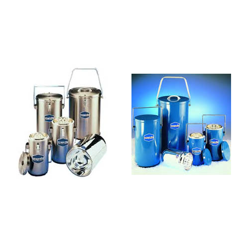 Dewarflaskor i  rostfritt stål, korrosionsbeständiga och starka.  Dubbelväggigt boroscilicate glas, vakuumtryckta och försilvrade medför en effektiv lagring, transport och användning av flytande kväve och torris. Locken är i rostfritt stål, ventilerade och med inbyggd isolering. Lock-klämmor  för säkra transporter och minimera spill.