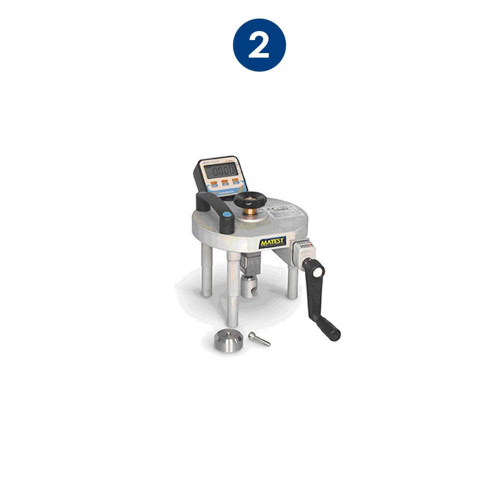 Denna dragprovare mäter vidhäftningskraften och draghållfastheten hos två lager av material (betong, ytputs, murbruk, byggnadsputs, kalk etc.). Dragningen sker via en handvev.