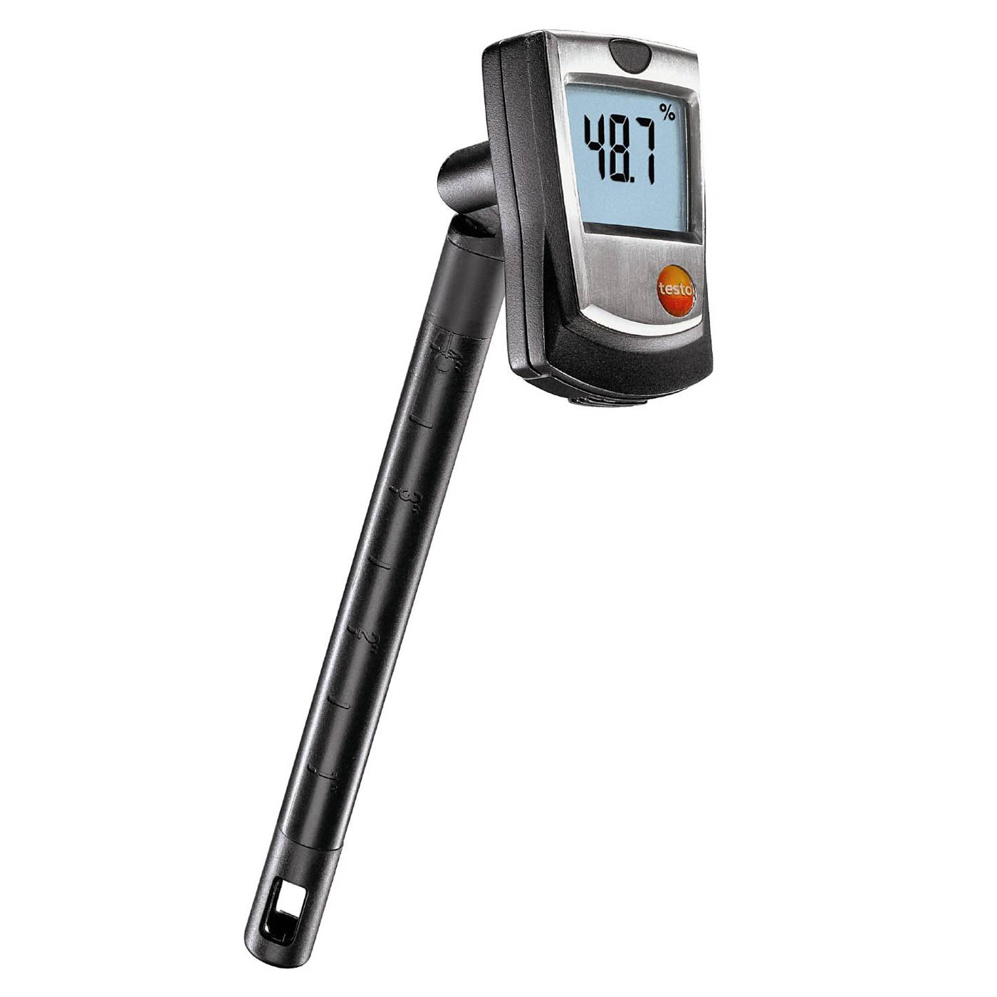 Termohygrometern Testo 605-H1 möjliggör tillförlitlig mätning av luftfuktighet och lufttemperatur samt beräkning av daggpunkten. Den har ett fast monterat sondskaft vilket gör att den är utmärkt när det gäller att utföra kontrollmätningar i ventilationskanaler.