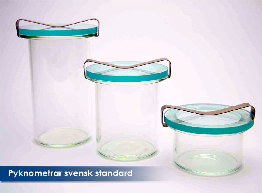 Som standard levereras pyknometrarna med ett platt glaslock och metallklämma