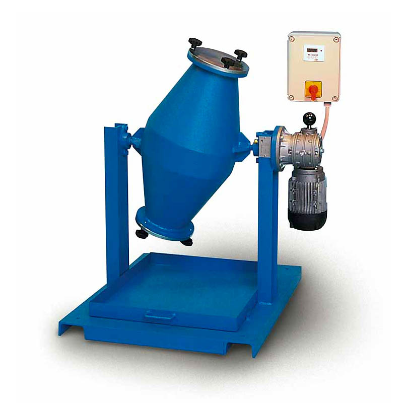 Designad för att blanda torra material såsom: pulver, cement, gips och granulometriska material. På kort tid säkerställer det en perfekt och homogen blandning. Blandaren består av två motsatta asymmetriska koner och en panna för uppsamling av det blandade materialet. Levereras komplett med timer.