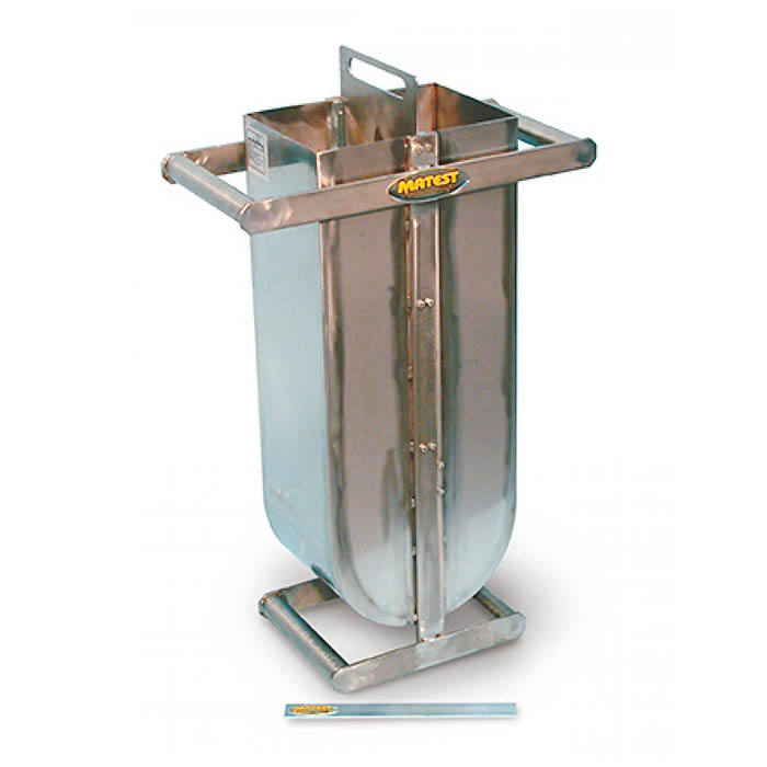 U-Box, tillverkad i rostfritt stål, med släta väggar inuti, utrustad med ett flödeshinder som bildas av fyra vertikala armeringsjärn.