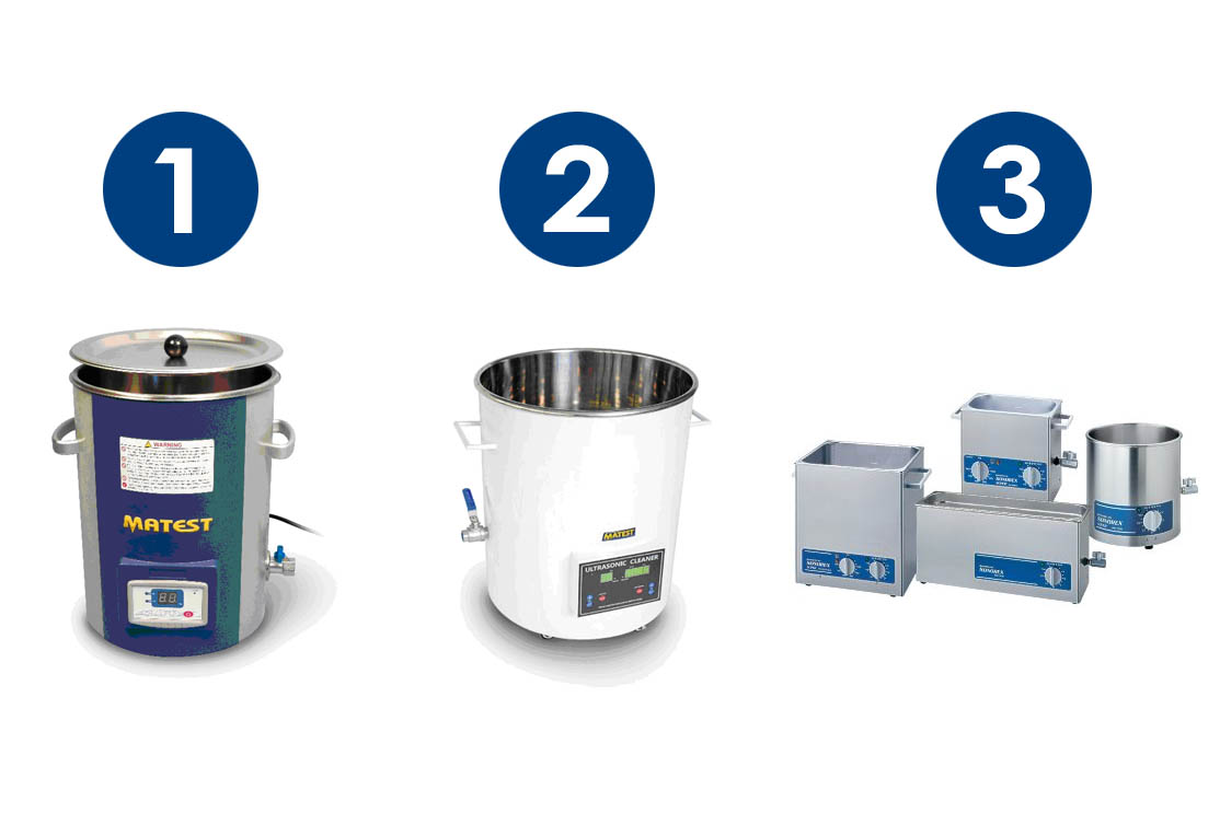 Storlekar på ultraljudsbad finns från 0.9 – 58,0 liter, med och utan värmning.
