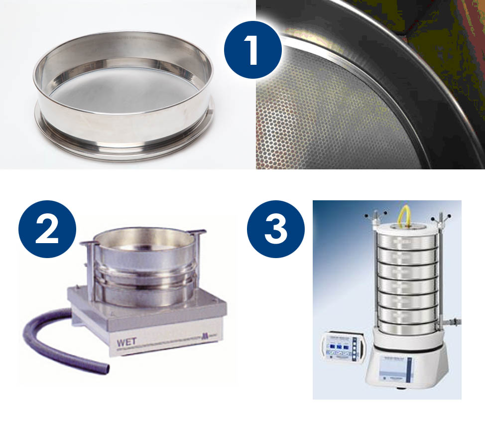 1) Tvättsikt diam 300 mm, maskvidd 0.063 mm med stödplåt
