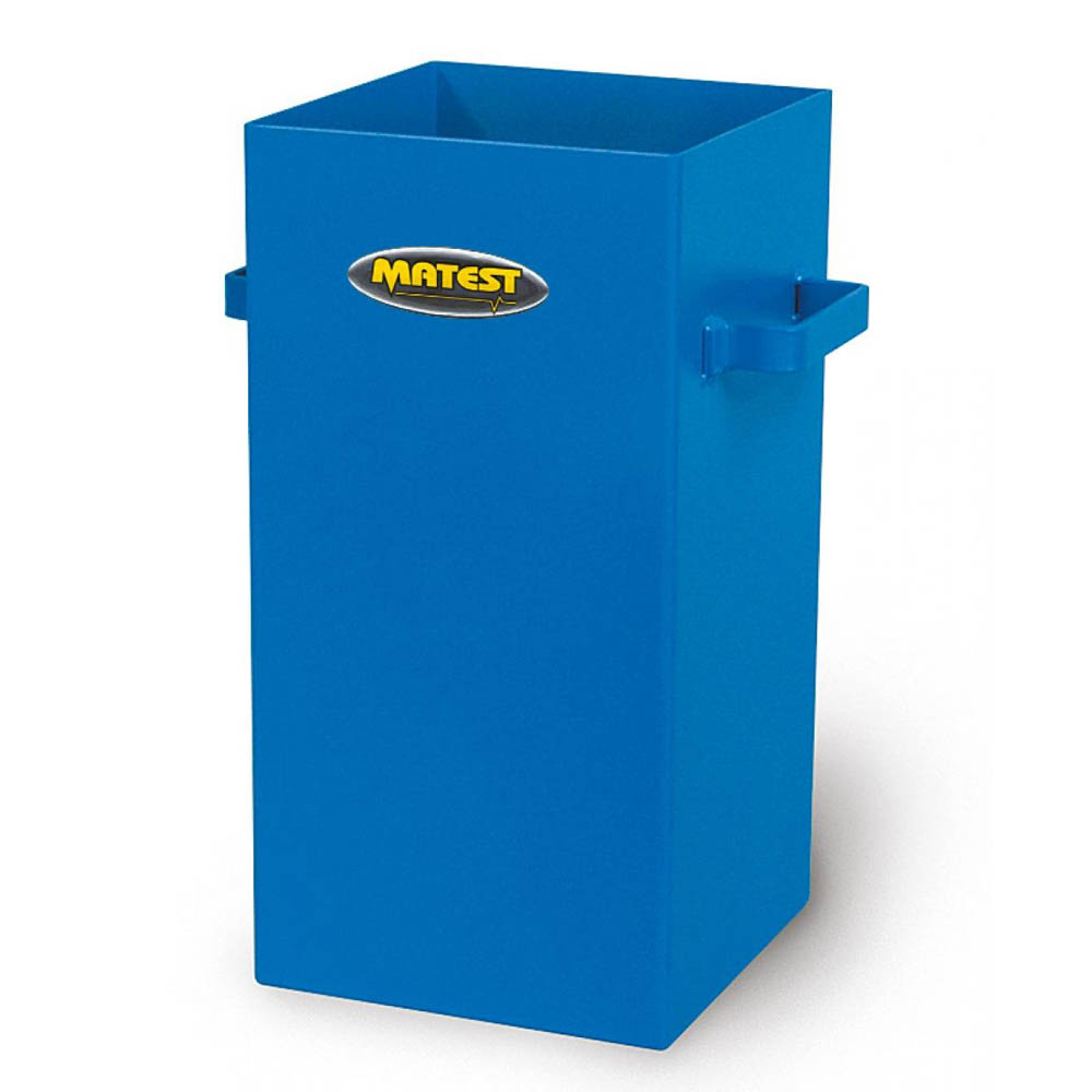 Lackad metalllåda med handtag 200×200 mm, höjd 400 mm.